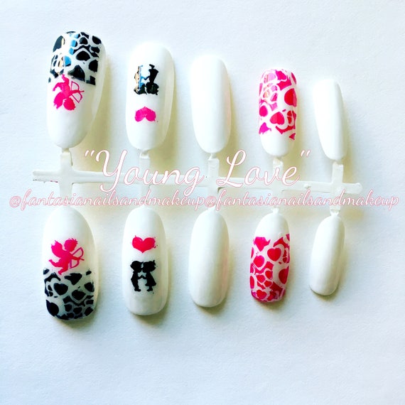 Valentine Nails Heart Nails Press On Nails Glue On Nails Etsy