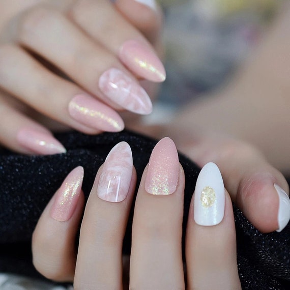 24pcs New Medium Almond Lovely Girl Artificial Nail Light Pink Etsy